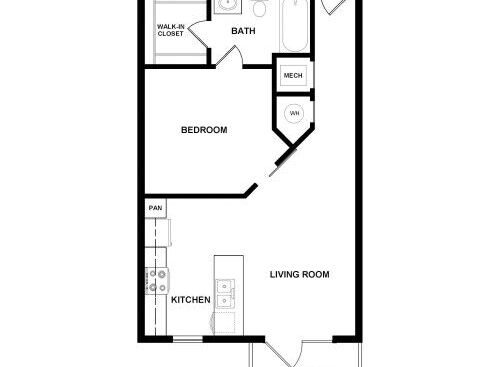 Beds: 1, Baths: 1, SQFT: 640