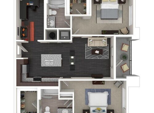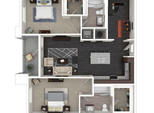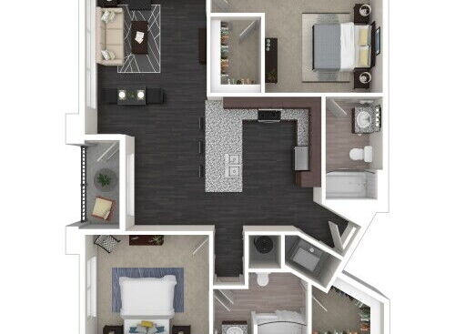 Renderings are intended only as a general reference. Features, materials, finishes and layout of units may be different than shown. For more details, ask a leasing representative about specific apartment features.